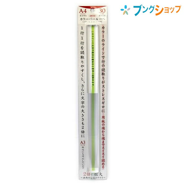 共栄プラスチック ルーペ拡大鏡 カラーバールーペ30cm グリーン CBL-1400-G バー型ルーペ 良く見える 大きく見える サイズアップ 虫めがね 虫眼鏡 レンズ 倍率 読みやすいカラーライン 画期的な読みやすさ