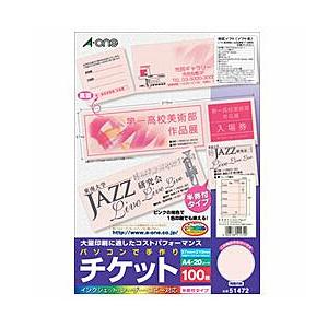 エーワン 51472 パソコンで手作りチケット ( A4判 / 5面 / 20シート ) ピンク