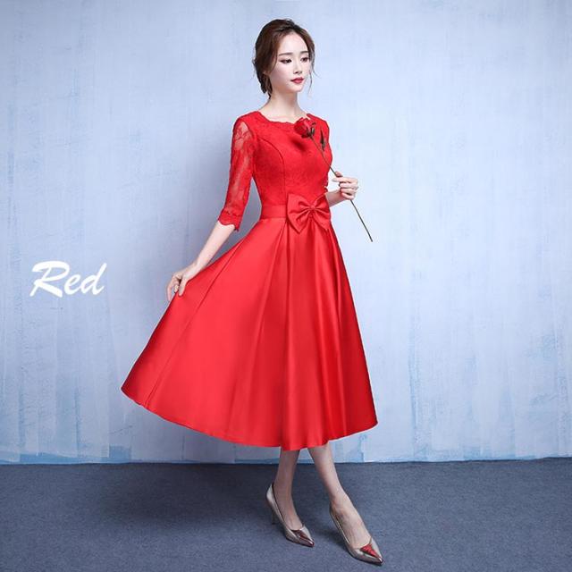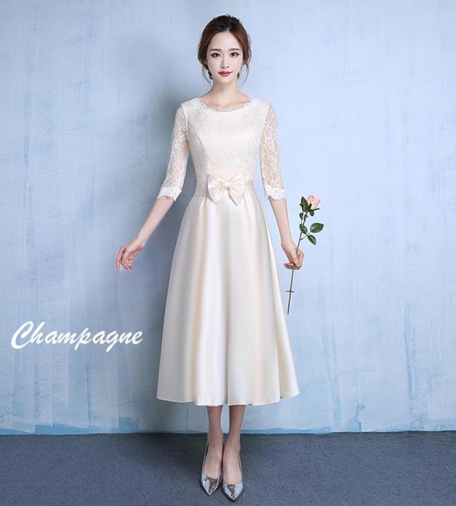 パーティードレス 結婚式 20代 ミモレ丈ドレス 演奏会用ドレス 発表会 大人 お呼ばれ 二次会 ドレスミモレ丈 30代 40代 50代 ネイビー