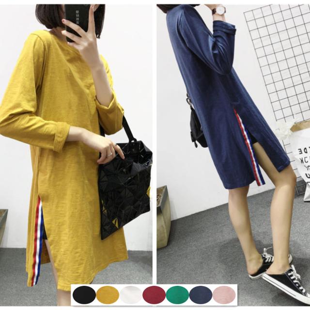 送料無料 長袖ロンt レディース ロングtシャツ ゆったり ドロップショルダー サイドスリット おしゃれ ビッグt ロンティー ティーシャツ