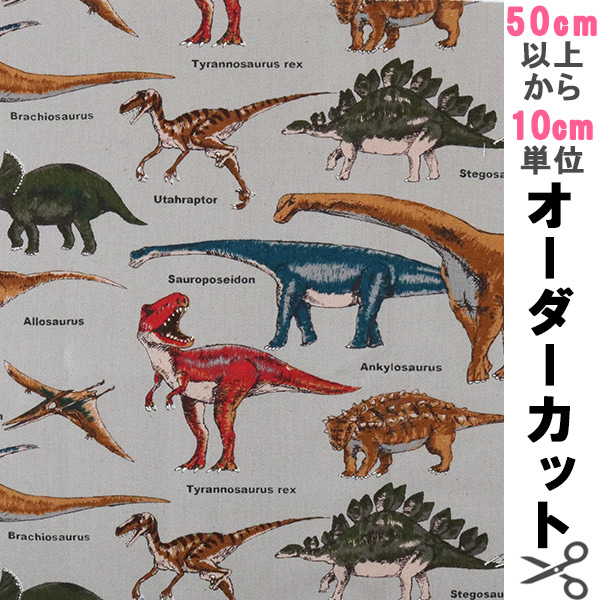 【数量5から】 生地 『ツイル 恐竜プリント C(グレー)』 コットンこばやし