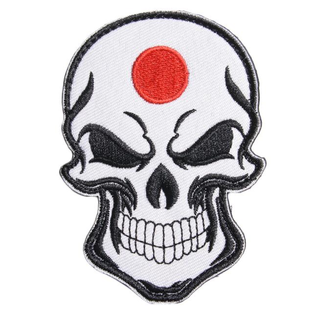 スカルのおでこに日の丸を描いた刺繍ワッペン