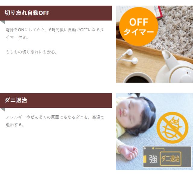 電源をONにしてから、6時間後に自動でOFFになるタイマー付きで、もしもの切り忘れにも安心です。