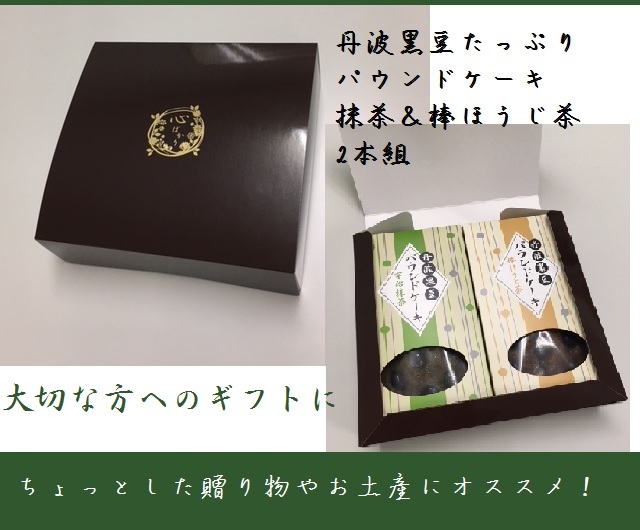 【日本茶と一緒にどうぞ】丹波黒豆パウンドケーキ宇治抹茶・ほうじ茶2本組ギフト箱入