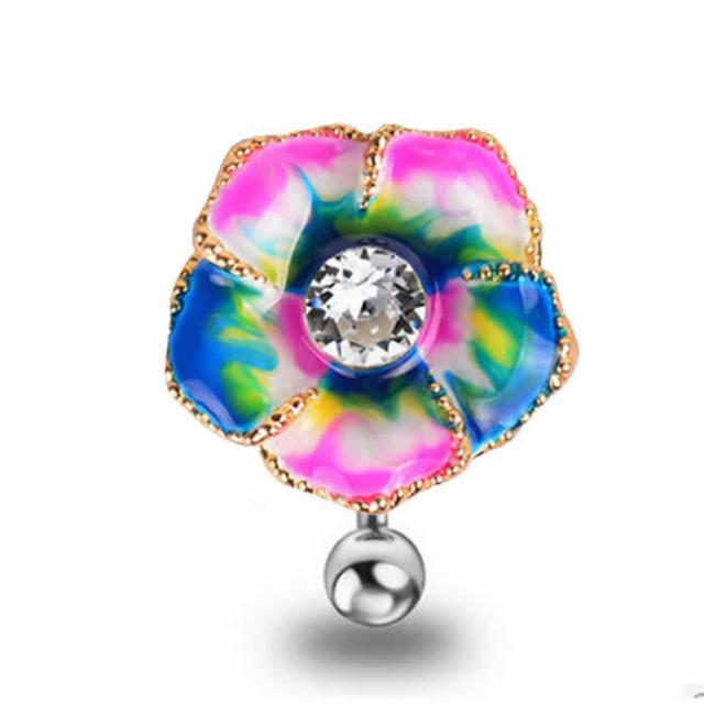 ビッグカラフルフラワー トップダウン へそピアス 14ゲージ 14G ヘソピアス 臍ピアス 花 ハイビスカス 虹色 レインボー 上向き 逆向き 反対向き レディース ボディピアス ボディーピアス サージカルステンレス316L ハワイアンジュエリー プレゼント 14ga ジルコニア エナメル