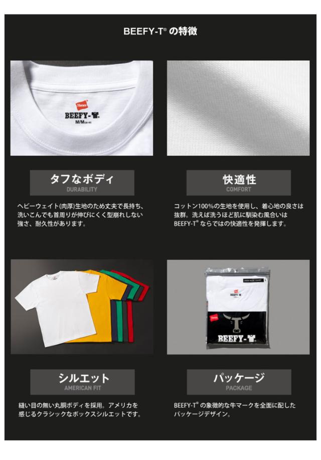 ヘインズ(Hanes)から、[ビーフィー/BEEFY]シリーズのメンズ半袖Tシャツです。