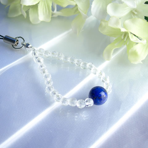 パワーストーン 【ラピスラズリ】ラピスラズリ&クリスタル携帯ストラップ03パワ−スト−ン