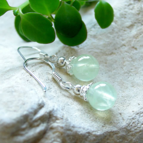 パワーストーン マスカットグリーンの結晶 プレナイト ピアス ノンホールピアス パワ−スト−