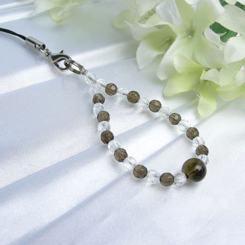 パワーストーン スモーキークォーツ& 水晶 携帯ストラップ パワ−スト−ン クリスタル (Crystal)
