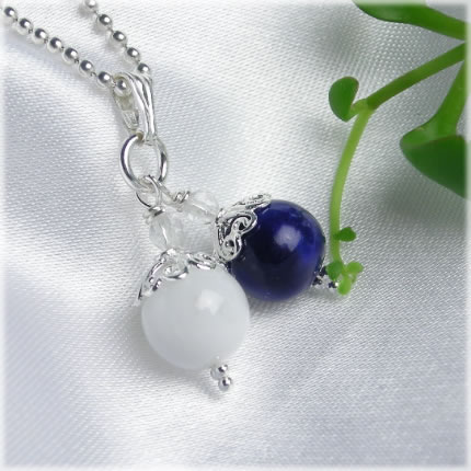 ラピスラズリとホワイトアゲートのツインペンダントトップを