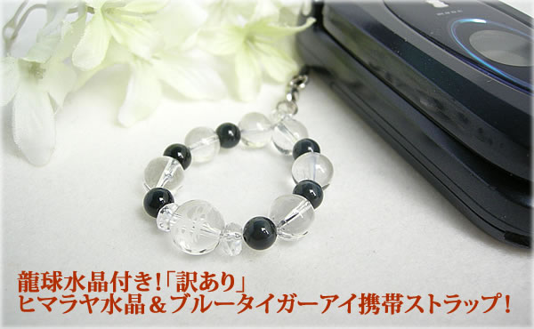 訳あり パワーストーン ストラップ 携帯ストラップ ヒマラヤ 水晶 龍珠 ブルータイガーアイ 携