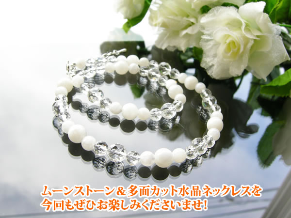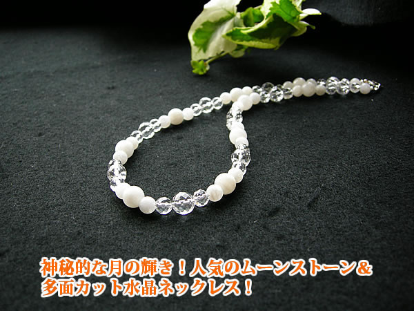 パワーストーン ムーンストーン & 多面カット水晶 ネックレス パワ−スト−ン 天然石 水晶メ