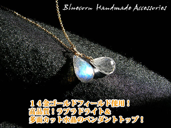 パワーストーン 14金ゴールドフィールド使用! 高品質 ラブラドライト & 多面カット水晶