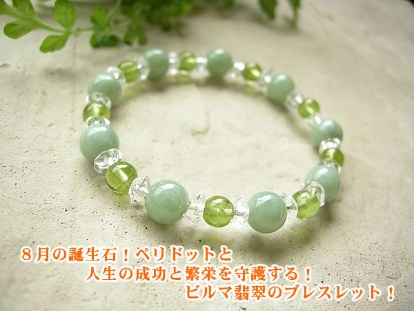 パワーストーン ブレスレット メンズ レディース 8月の! ペリドット と 幸運の ビルマ翡翠