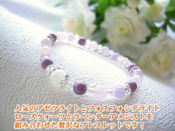 パワーストーン ブレスレット メンズ レディース アゼツライト & フォスフォシデライトローズ