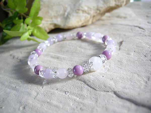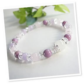 | ●アゼツライトについて 水晶の新種のひとつ、アゼツライトは、最高のヒーリングクリスタル(水晶)と言われ、 アメリカのノースカロライナ州、バーモント州、インドのサチャロでしか産出されていない、 非常に貴重な水晶のひとつとされています。 また、純粋で高度な波動を持つ石とも言われているこのアゼツライトは、持つ人の意識や波動を、 より高いレベルまで引き上げ、他の人を助けるためにポジティブな波動を創り出してくれるパワーストーン でもあります。その最も高い波動のエネルギーから、思い通りの人生を叶えてくれる水晶とも言われています。 ●フォスフォシデライトについて フォスフォデシライトは、持つ人の感受性を高め、美意識の心を育てると言われているパワーストーンです。 マイナスな思いを断ち切りたいときや、自信を回復させたい時などに、このフォスフォシデライトは 効果があると言われ、心を安定させて気持ちをリセットしてくれるとも言われています。 また、創造性や直観力、自信と勇気を与えてくれる石でもあり、また、疲れを癒やしてくれるお勧めの ヒーリングストーンです♪ ●ラベンダーアメジストについて 「紫水晶」として人気の高いアメジストは、調和と安定を表すパワーストーンで、人間関係の調和や 家庭円満など、いつも心を穏やかに調和の心を保つためのサポートをしてくれると言われています。 また、アメジストには、癒しと安らぎを与えてくれる優しいいエネルギーを持ち、不安やストレスを 和らげてくれるパワーを与えてくれるとも言われています。 ●ローズクォーツについて ローズクォーツは、古来、愛と美の女神ヴィーナスのパワーを宿したストーンと言われ、 恋愛成就のお守り石として有名です。また、心に満足感と平和を得ることが出来るストーンとも言われ、 実際ローズクォーツのストーンを持っていると優しいエネルギーが流れて、癒しのひと時を与えてくれます。 | |