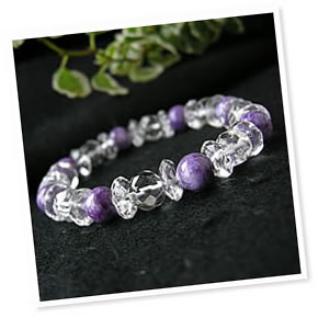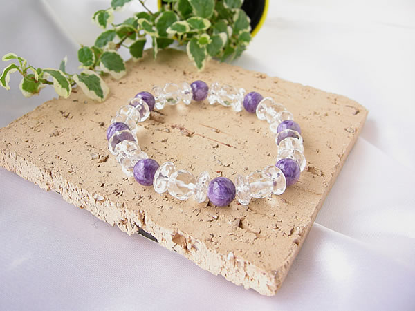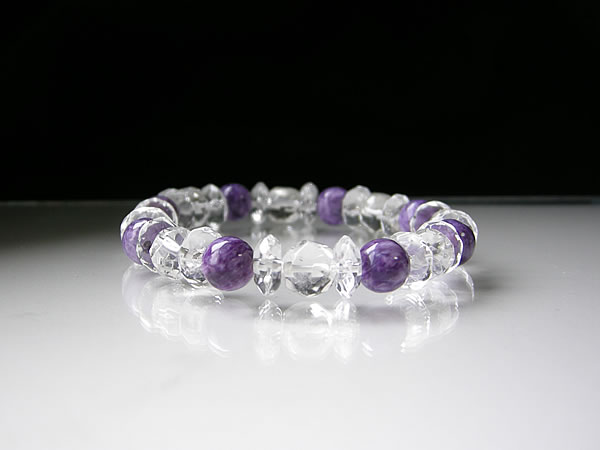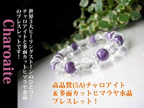 人気のパワーストーン! 世界3大ヒーリングストーンのひとつ! チャロアイトと多面カットヒマラヤ水晶の ブレスレットです!