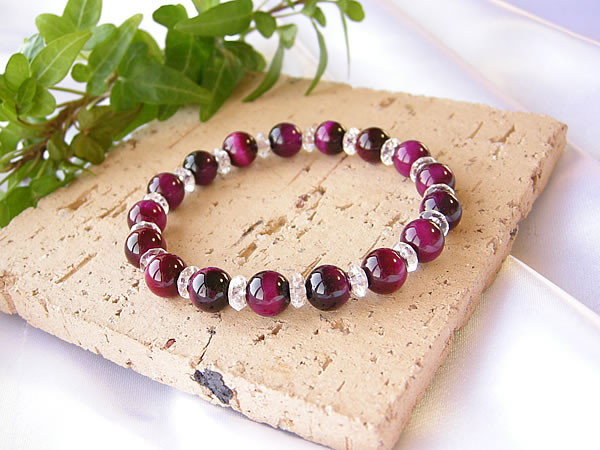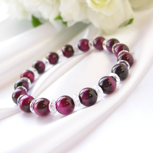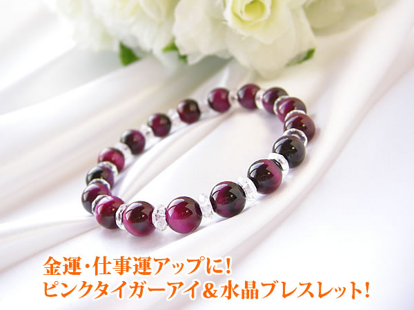 パワーストーン ブレスレット メンズ レディース ピンクタイガーアイ & 水晶 ブレスレット!