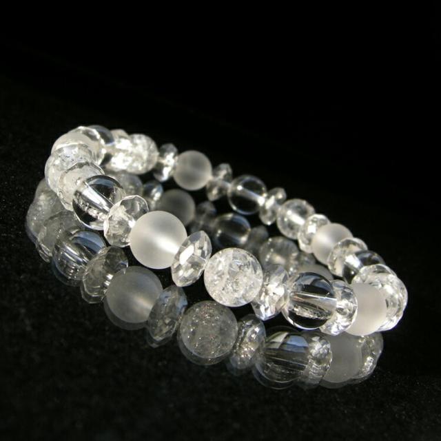 パワーストーン 水晶 ブレスレット クラック水晶 フロスト水晶 天然石 プレゼント 占い・開運祈願・風水・癒し・安らぎ・魔除け ブレス 浄化 激安 人気 おしゃれ レディース メンズ 石・天然石 パワーストーンブレスレット