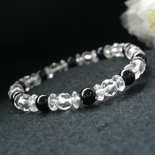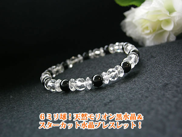 パワーストーン ブレスレット メンズ レディース 6ミリ球! 天然モリオン黒水晶 & スターカ