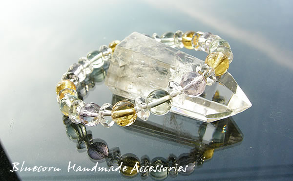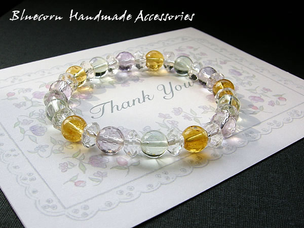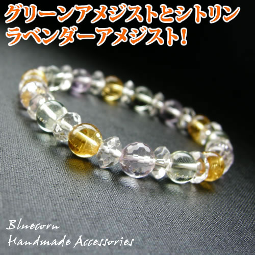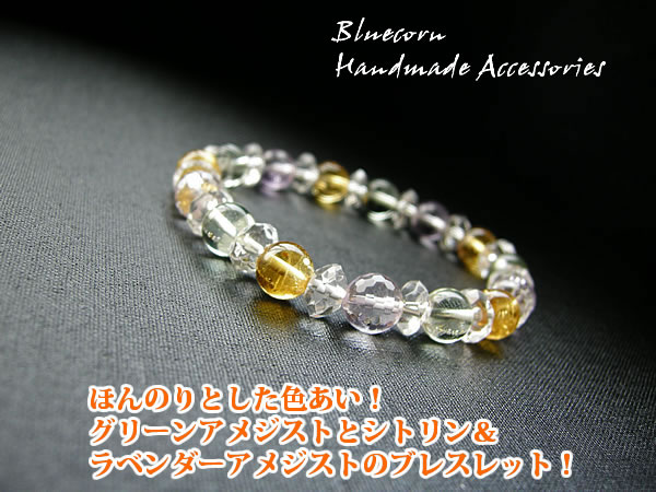 パワーストーン ブレスレット メンズ レディース グリーンアメジスト と シトリン & ラベンダ