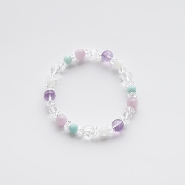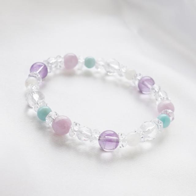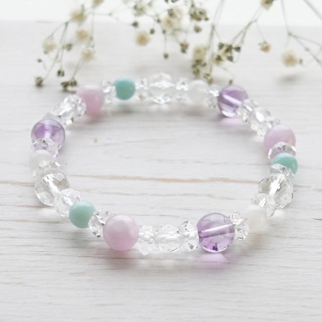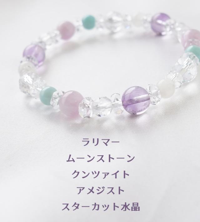 〜人気のラリマー、ムーンストーン、クンツァイトにスターカット水晶を組み合わせたブレスレットです。〜