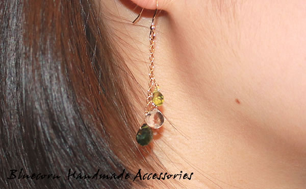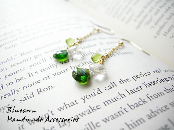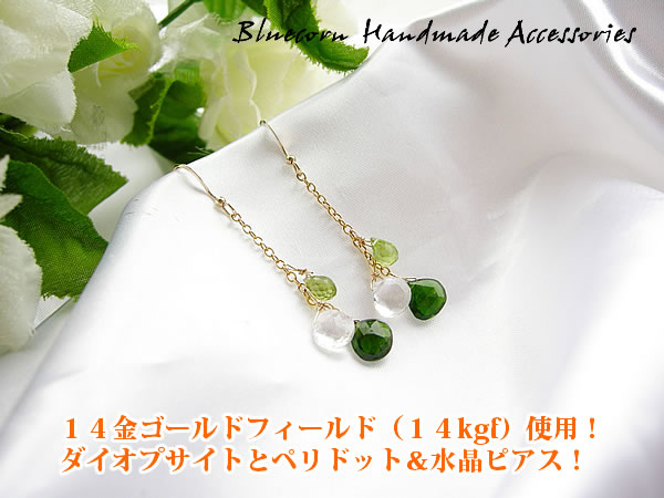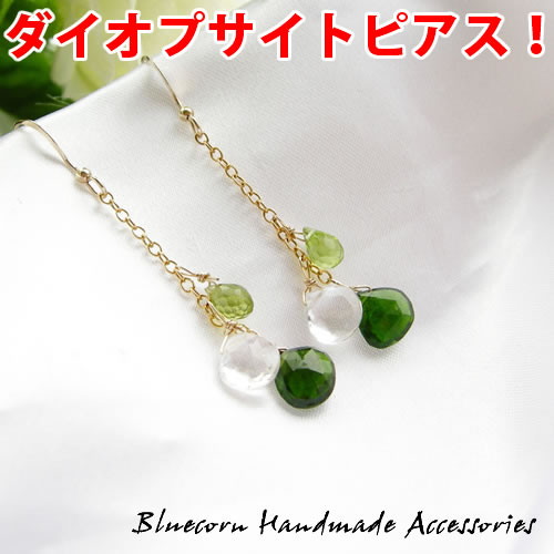 ダイオプサイトとペリドット&水晶のロングピアスです!