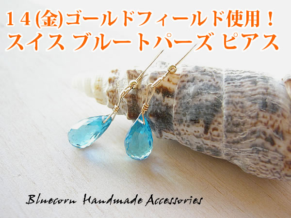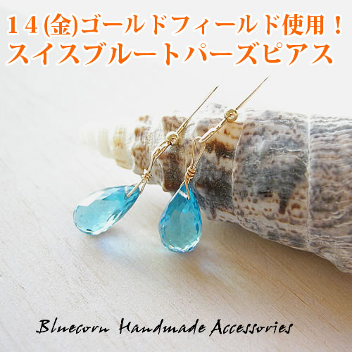 パワーストーン ピアス 天然石 14金 ゴールドフィールド ノンホールピアス スイスブルートパー