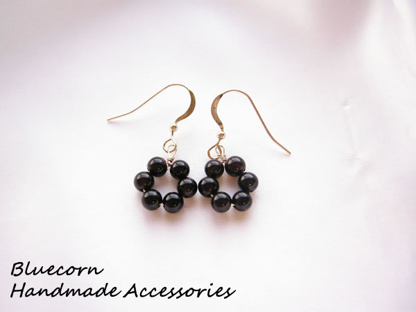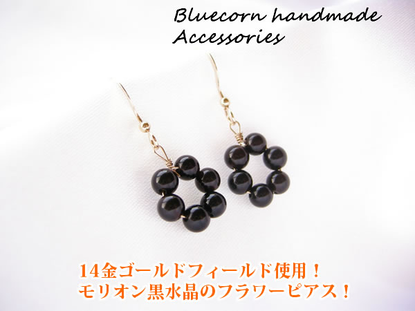 モリオン パワーストーン 14金ゴールドフィールド使用! モリオン黒水晶 フラワー ピアス