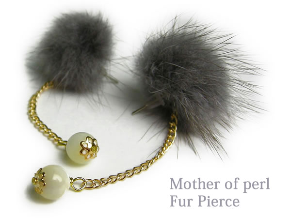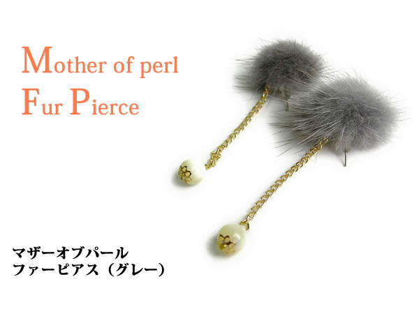 ピアス ファーピアス ロングピアス パワーストーン マザーオブパール ファー ピアス グレー レ