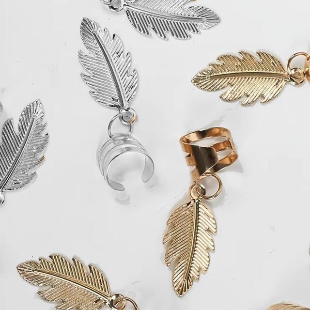 銀色と金色から選べるフェザーのチャームが揺れるデザインが魅力的なアイテムです。穴を開けずに耳に挟むだけで装着できるので、ピアスホールがない方にもぴったり。シルバーの輝きが耳元を華やかに演出し、メンズ・レディース問わず使えるユニセックスなデザインです。真鍮製で激安価格なので、最近では耳に挟むだけでなく、ダンス発表会やコンサートの時、ドレッドヘアーや編み込みの髪にはさんでヘアアクセサリーとしてもつかわれる流行のアクセサリーです。