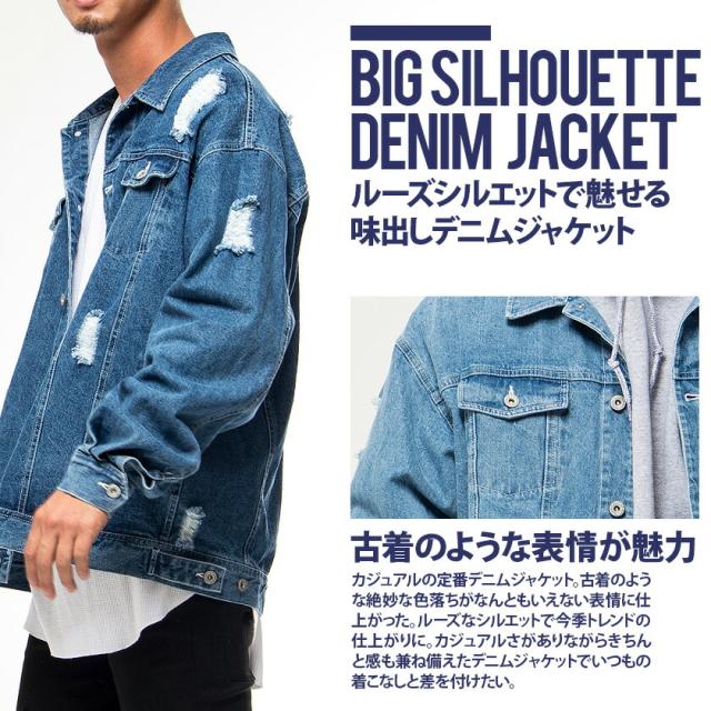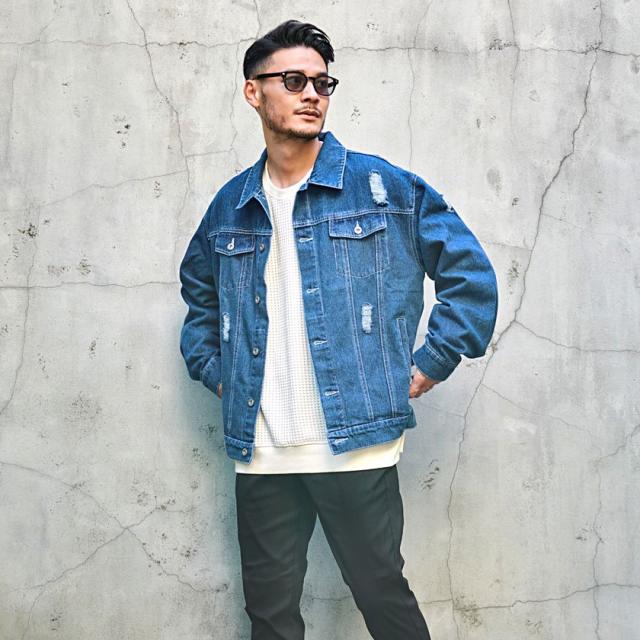 デニムジャケット メンズ ダメージ加工 ビッグシルエット Gジャン おしゃれ ブランド オーバーサイズ 大きめ ゆったり ダメージ クラッシュ アウター カジュアル 春 夏 秋 冬 ストリート ストリート系 ストリートファッション 韓国 韓国系 韓国ファッション 下北沢 下北系 古着 古着系 90s 90年代 2000年代 Y2K ファッション CavariA キャバリア 男性 男 父の日 父の日ギフト 父の日プレゼント 20代 30代 40代 メンズファッション 東京 プレゼント 誕生日 記念日 贈り物 ギフト配送について