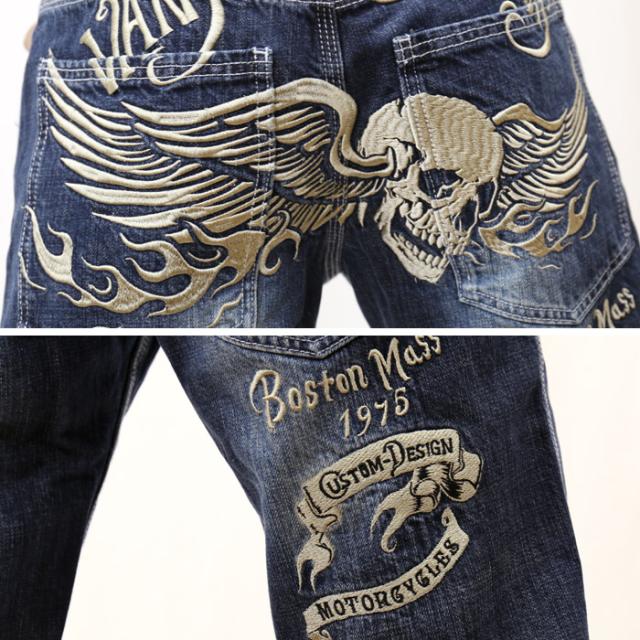 デニムパンツ VANSON バンソン ウイングスカル 髑髏 sp-b-14