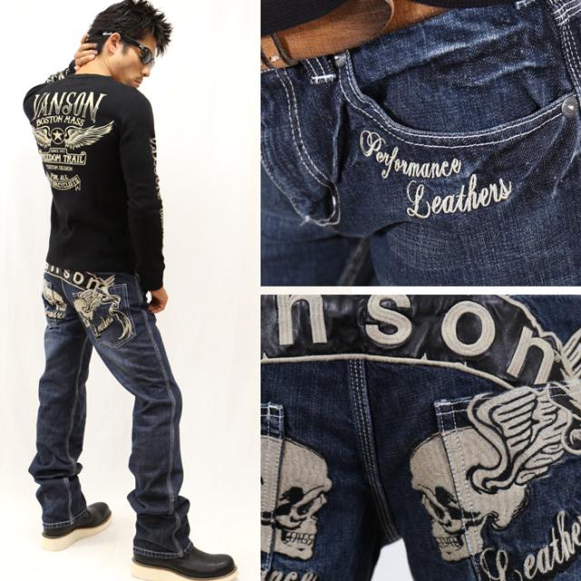 デニムジーンズ VANSON バンソン パンツ ボトムス ツインスカル 刺繍 sp-b-7a
