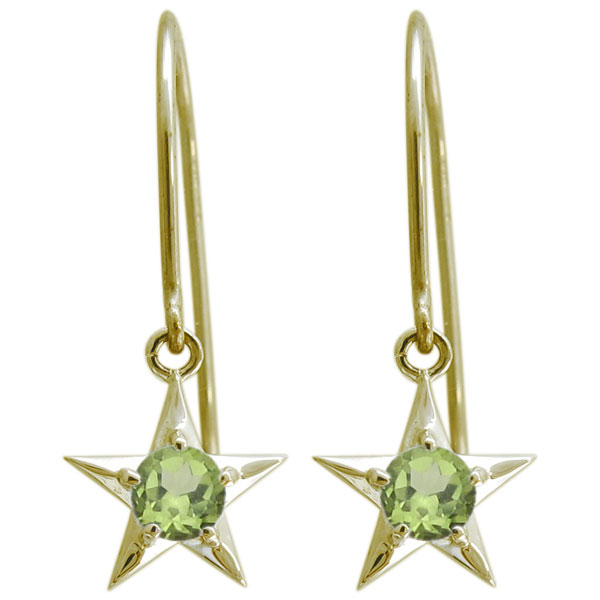 星ピアス スターピアス ペリドット 10金 フックピアス