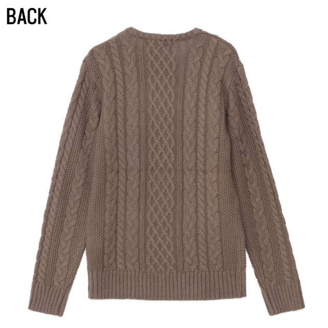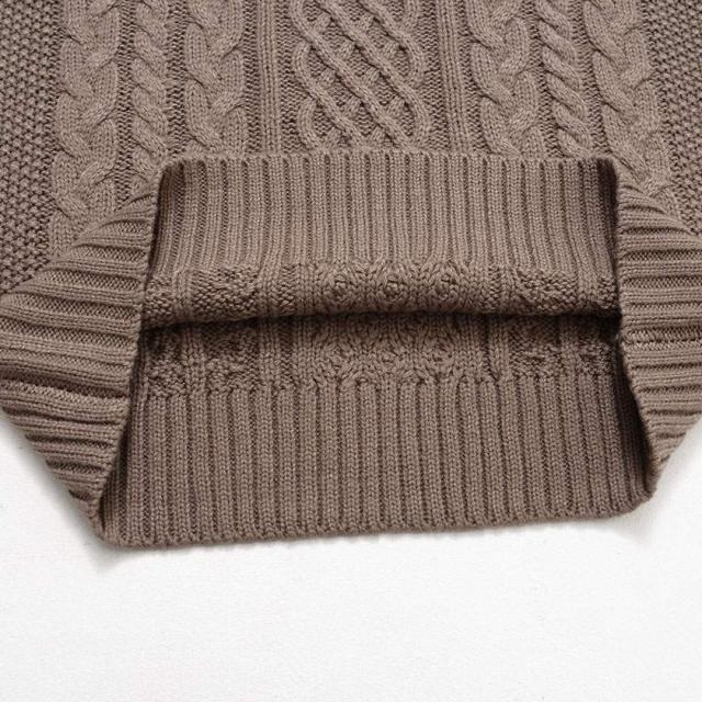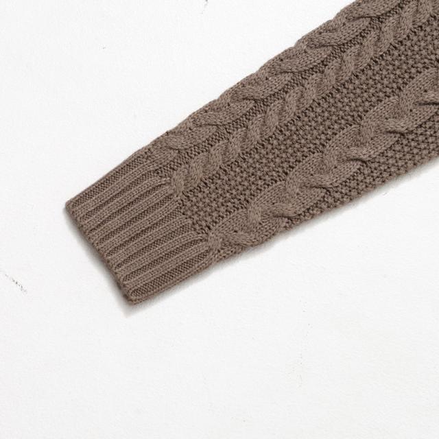三つ編みのような柄が縦に施されたケーブル編みの立体感が豊かな表情を生み出し、1枚でバッチリ決まります。