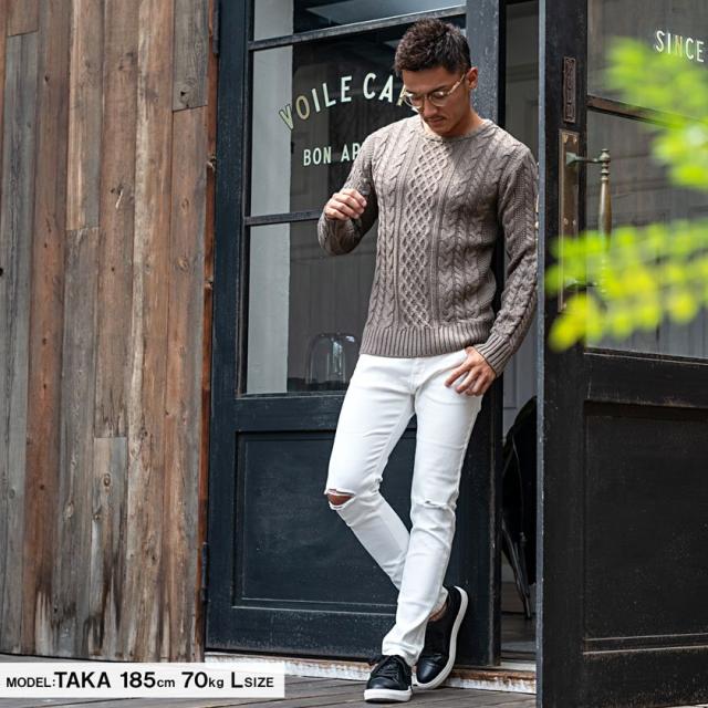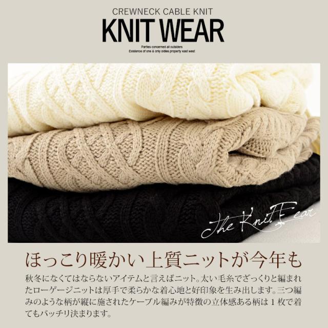 セール SALE【送料無料】ニット セーター メンズ ブランド 長袖 トップス クルーネック ケーブル編み ローゲージ 厚手 無地 ユニセックス ホワイト ブラック 白 黒 M L XL 大人 きれいめ Vicci 秋 冬 即日発送 20代 30代 40代 メンズファッション [VIBD15-07]