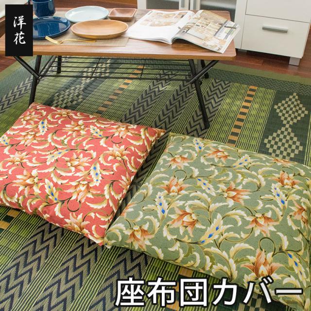 座布団カバー 洋花 55×59cm 銘仙判 業務用 グリーン ピンク 55×59 ざぶとんカバー 綿100%シンプル 洋花 おしゃれ