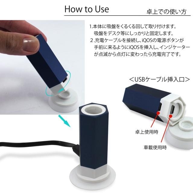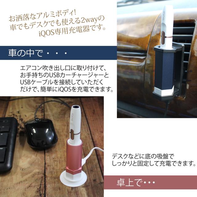 ・iQOS(アイコス)チャージャーが電池切れでもiQOS(アイコス)ホルダーを直接充電できる便利な卓上/車載兼用の充電器です。