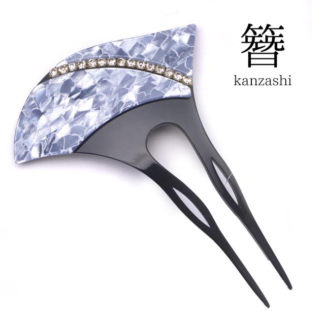 簪 和装 着物 上品 二本差し 礼装 大人 バチ型 髪飾り かんざし シェル調 ラインストーン 青 空色 ヘアアクセサリー