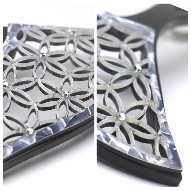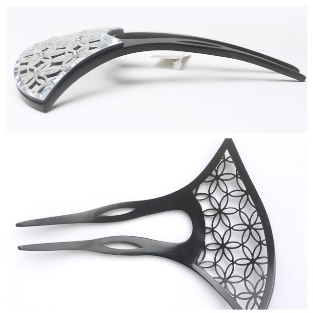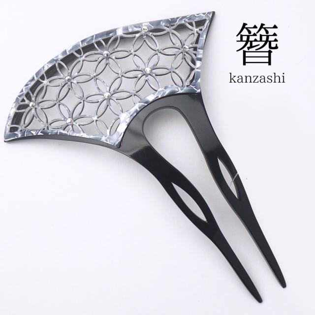 簪 バチ型 髪飾り かんざし シェル調 銀 シルバー 麻の葉つなぎ ラインストーン ヘアアクセサリー