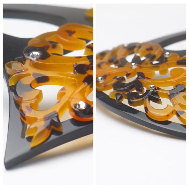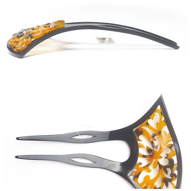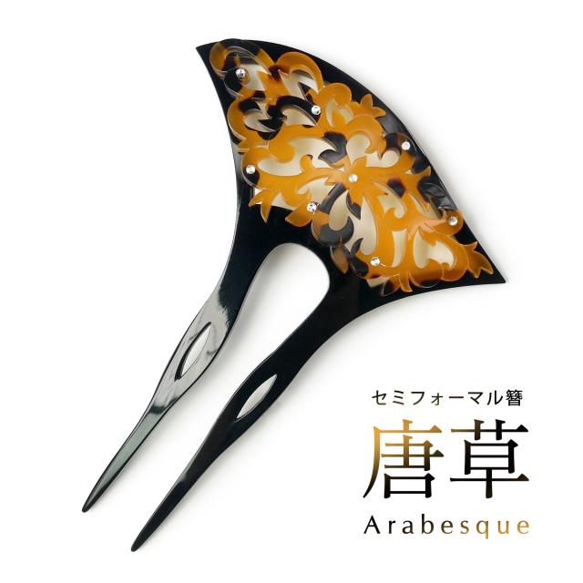 【べっ甲風透かし彫り飾り簪】簪 バチ型 髪飾り かんざし べっ甲調 唐草 ラインストーン ヘアアクセサリー