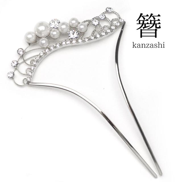 二本差し 簪 髪飾り 高級 かんざし【銀 シルバー ラインストーン パール】留袖 礼装 着物 和装用 ヘアアクセサリー 送料無料