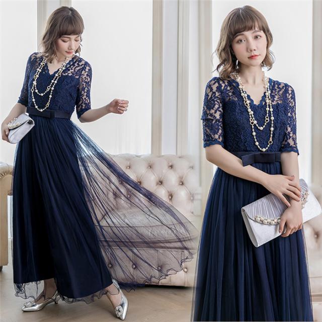 ロングドレス パーティードレス レディース ワンピース ネイビー 結婚式 花嫁 ドレス 二次会 ブライドメイド 舞踏会 演奏会 披露宴ドレス 大きいサイズ お呼ばれ dress 上品 da549c0c0c0