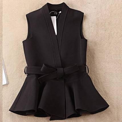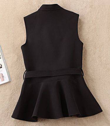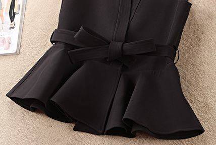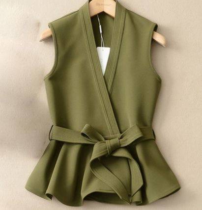 トップス ベスト レディース リボンベルト ペプラム シンプル ブラック カーキ エレガント 上品 大人 オフィス パーティー 食事会