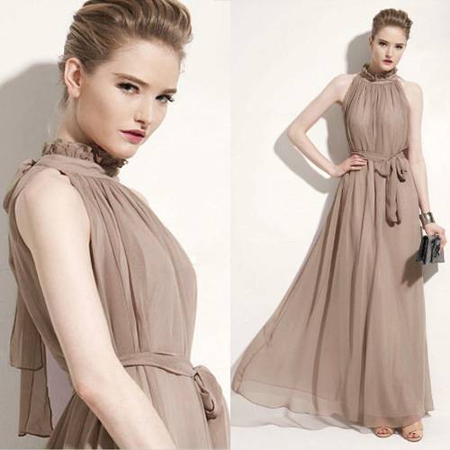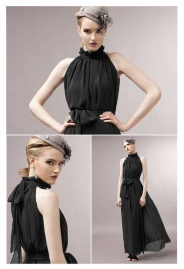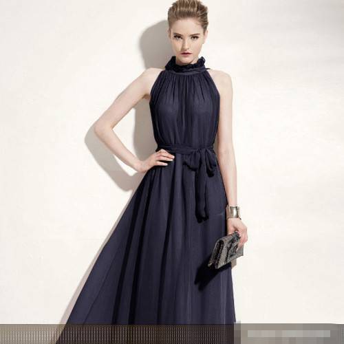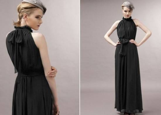 ロングドレス 黒 パーティドレス 結婚式 春夏 30代 マキシ丈 ノースリーブ ハイネック 無地 Aライン 透け感 シンプル シフォン