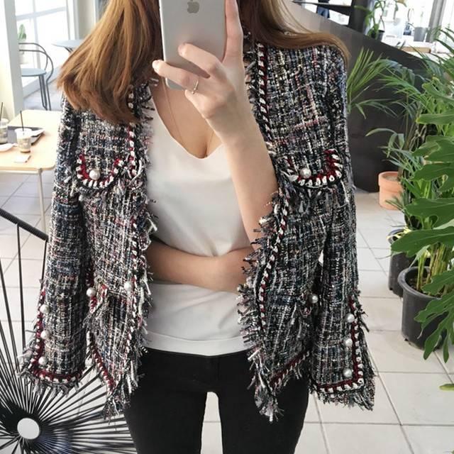 - 写真よりキラキラしていて、真珠は大きめです。 ツィードの素材は柔らかくあったかそうで、秋から春先まで活躍できそうです。 モデルのようにジーンズや黒パンツと合わせるとかっこよく着こなせるとおもいます。 ...