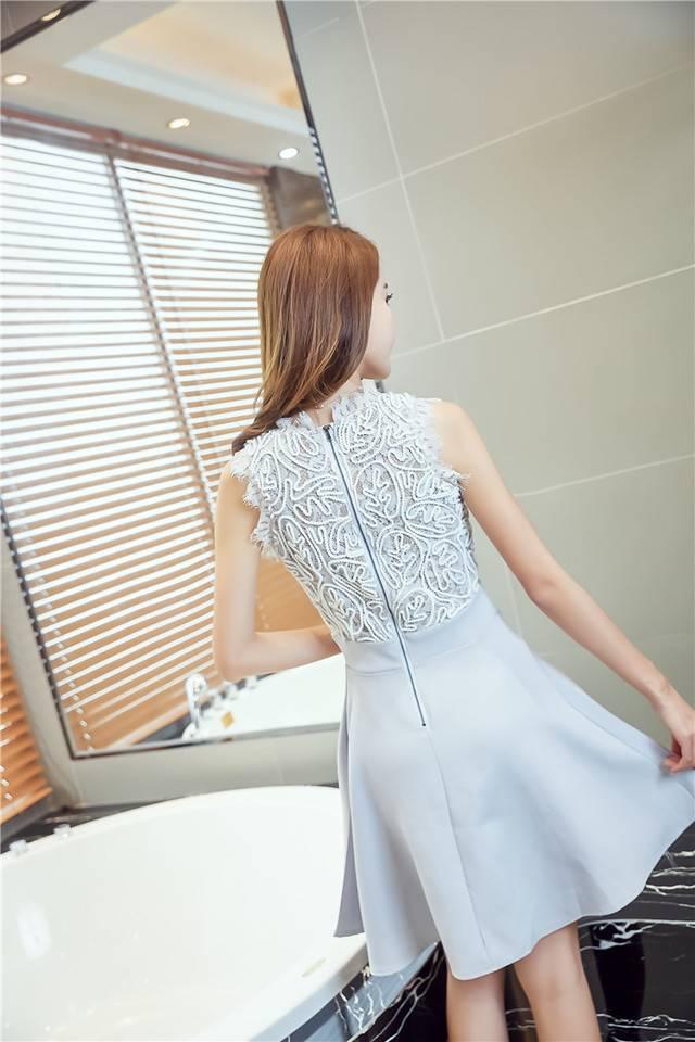 ドレスワンピース 2color ハイネック ノースリーブ 結婚式 2次会 パーティー おしゃれ インスタ映え 可愛い 清楚