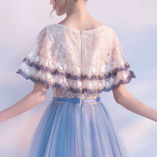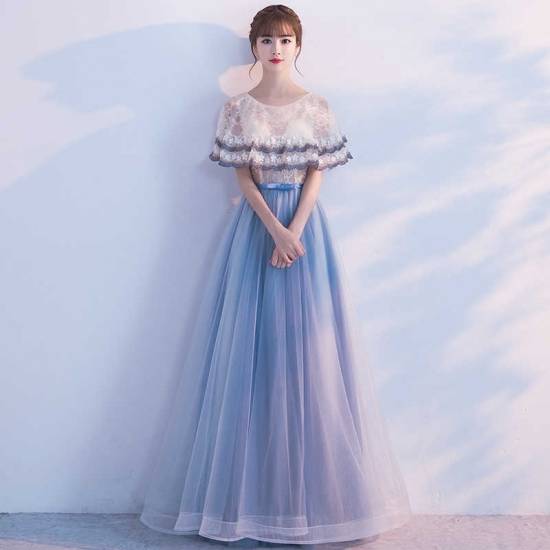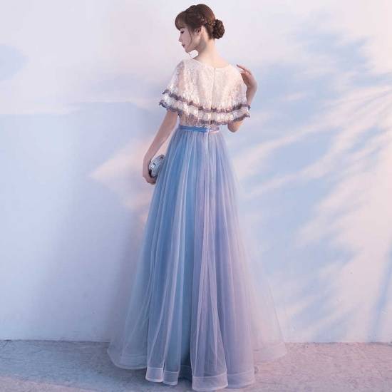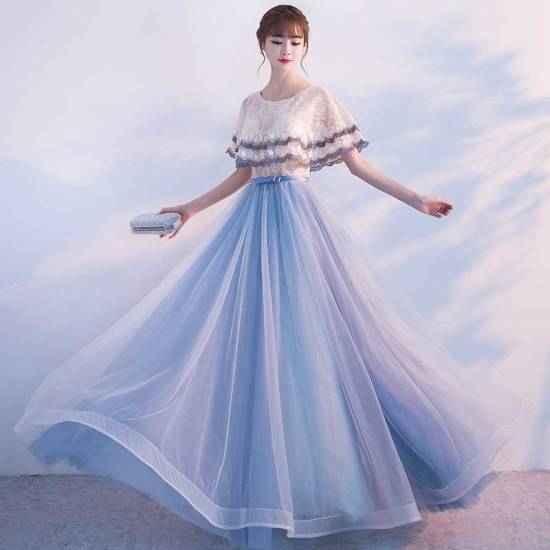 ロングドレス 袖あり 演奏会 パーティードレス ワンピースドレス ワンピース ドレスワンピ お呼ばれドレス イブニングドレス 二次会 お呼ばれ ステージ衣装 音楽会 食事会 バイカラー 白 大きいサイズ マキシ丈 ボレロ風 フレア Aライン レース チュール ラウンドネック
