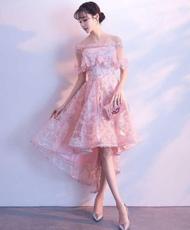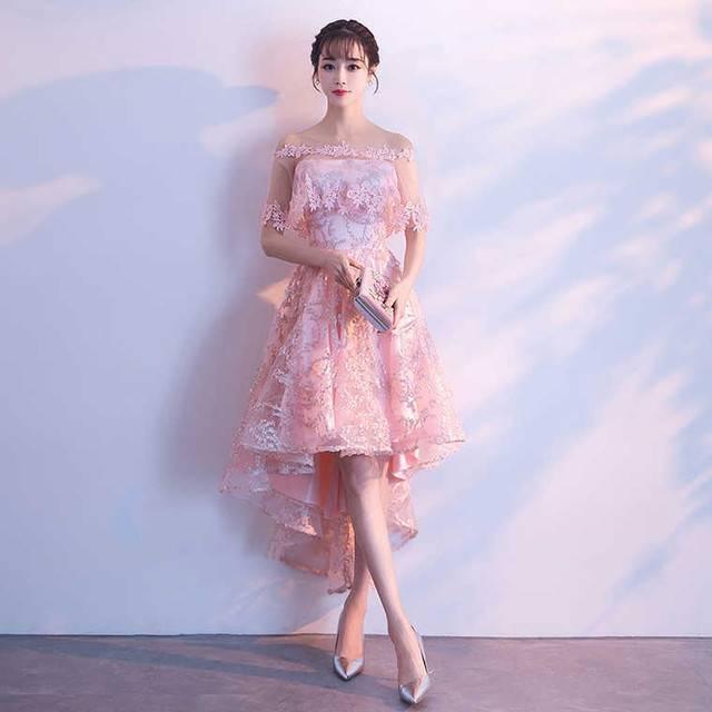 パーティドレス 春夏 二次会 演奏会 結婚式 20代 ミニ丈 半袖 袖あり 総レース 花柄 刺繍 Xライン フィッシュテール ガーリー